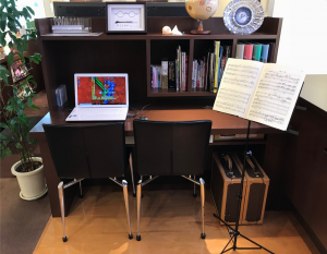 ほかには譜面台や楽譜、ピアノを想定した譜面台の高さなどを確認できるコーナーも用意しております。